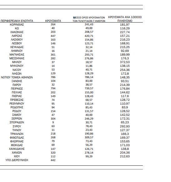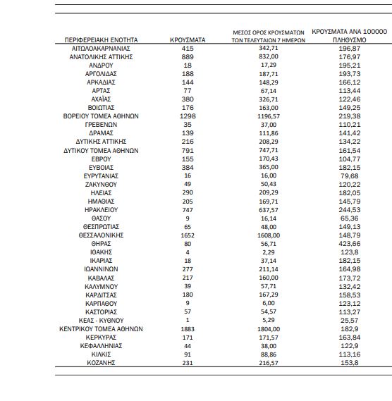 Αναλυτικότερα τα κρούσματα στις περιφερειακές ενότητες που ανήκουν στην Αττική:
