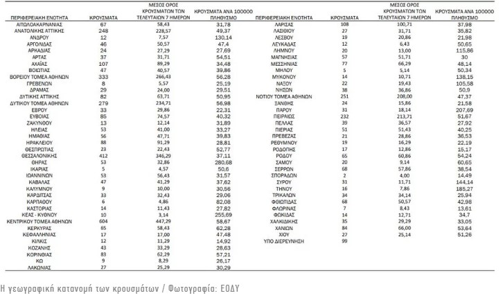 Αναλυτικά τα κρούσματα ανά περιοχή