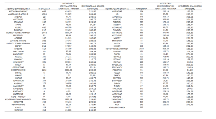 Η αναλυτική γεωγραφική κατανομή των κρουσμάτων