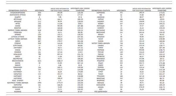 Η αναλυτική γεωγραφική κατανομή των κρουσμάτων