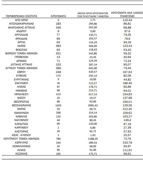 21 κρούσματα στην Π.Ε. Φωκίδας