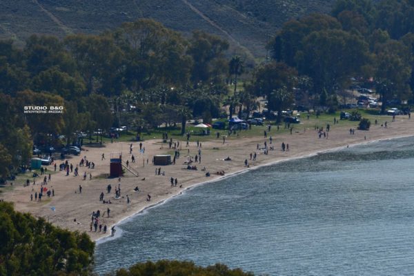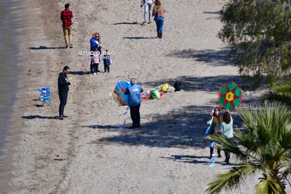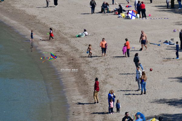 Από νωρίς το πρωί της Καθαρής Δευτέρας συρρέουν μικροί και μεγάλοι στην παραλία του Ναυπλίου Καραθώνα, για τα παραδοσιακά κούλουμα στην Ελλάδα.