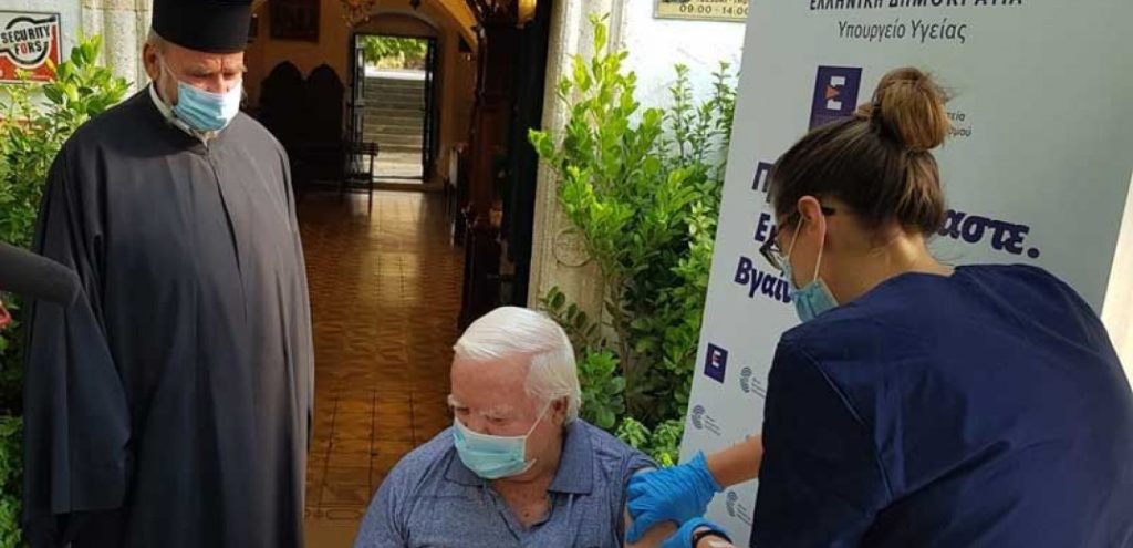 Ανδρας 75 ετών, ο Μιχάλης Βαρδάκης, ήταν ο πρώτος που, σήμερα λίγο μετά τις 9.30 το πρωί, εμβολιάστηκε κατά της Covid 19, στον ιερό ναό της Παναγίας στις Αρχάνες Ηρακλείου, που ύστερα από απόφαση της Ενορίας και της δημοτικής Αρχής -σε συνεργασία με την 7η ΥΠΕ Κρήτης- μετατρέπεται σε εμβολιαστικό κέντρο, για λίγες ώρες.