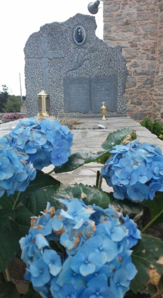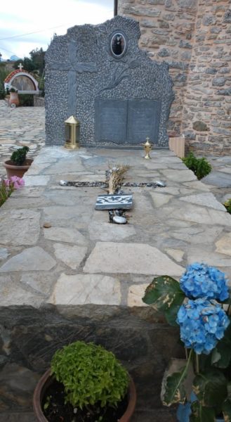 Ο χαριτόβρυτος τάφος του βρίσκεται στον προαύλιο χώρο του κεντρικού Ιερού Ναού της Εθιάς που είναι αφιερωμένος στην Παναγία και αποτελεί προσκύνημα πολλών πιστών από όλη την Ελλάδα και το εξωτερικό.