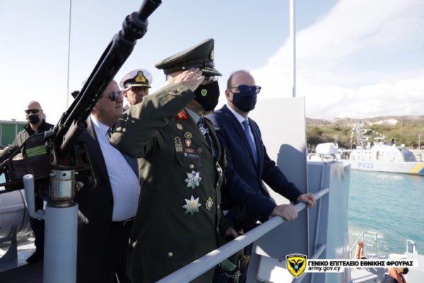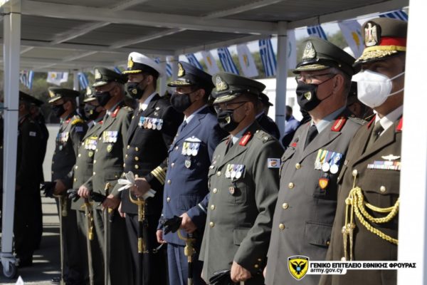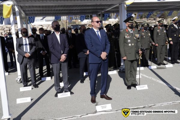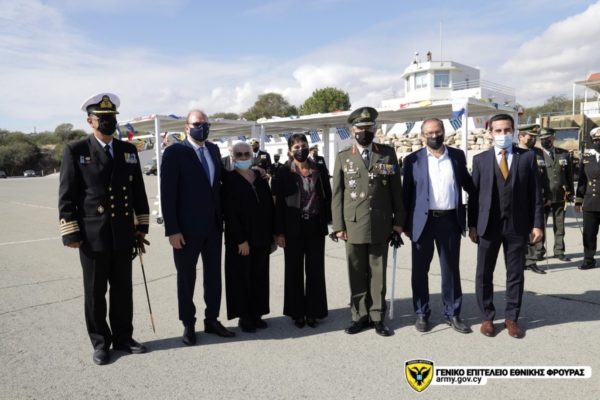 Την τελετή τίμησαν με την παρουσία τους, ο Κύπριος Υπουργός Άμυνας κ. Χαράλαμπος Πετρίδης, ο Αρχηγός της Εθνικής Φρουράς, Αντιστράτηγος Δημόκριτος Ζερβάκης, ο Πρόεδρος κ. Μαρίνος Σιζόπουλος και μέλη της Κοινοβουλευτικής Επιτροπής Άμυνας της Βουλής, ο Γενικός Διευθυντής του Υπουργείου Άμυνας, κ. Ανδρέας Λουκά, ο Υπαρχηγός της ΕΦ, Αντιστράτηγος Κωνσταντίνος Χρυσηλίου και η ιεραρχία του Γενικού Επιτελείου Εθνικής Φρουράς. Παρευρέθηκαν επίσης, ο Διοικητής της Διοίκησης Ναυτικού με το Επιτελείο του και ολιγομελής αντιπροσωπεία αξιωματικών άλλων όπλων και σωμάτων.