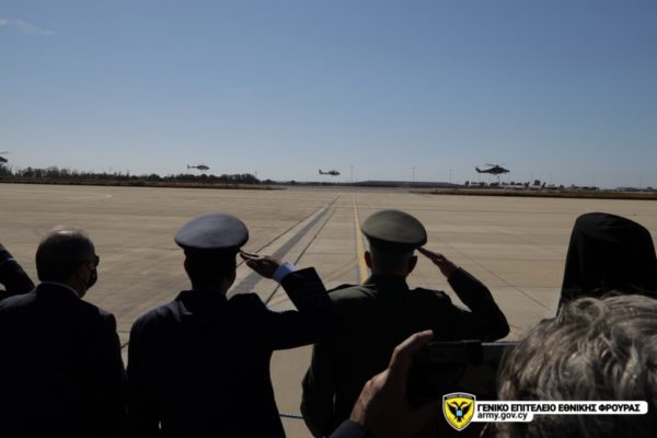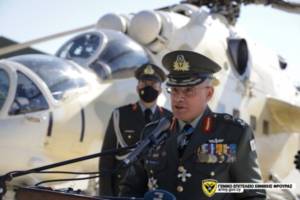 Ακολούθως, ανέφερε ότι στις ιδιαίτερες συνθήκες που διαμορφώνονται στην περιοχή μας, με την Τουρκία να κατέχει εδώ και 47 χρόνια μέρος του νησιού μας, αλλά και να αμφισβητεί καθημερινά με υβριδικές και άλλες μεθόδους, τα κυριαρχικά δικαιώματα της Κυπριακής Δημοκρατίας σε ξηρά θάλασσα και αέρα, επιβάλλεται να επαυξήσουμε τη μαχητική μας ισχύ και την επιχειρησιακή μας ετοιμότητα. Σε αυτή την προσπάθεια, η Διοίκηση Αεροπορίας, συμβάλει στην ενίσχυση της αποτρεπτικής ικανότητας της Εθνικής Φρουράς.