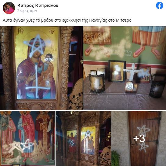 Οι εικόνες κάνουν το γύρο του διαδικτύου και φαίνεται ότι οι άγνωστοι ζωγράφισαν πεντάλφες και ανάποδους σταυρούς πάνω στις εικόνες.