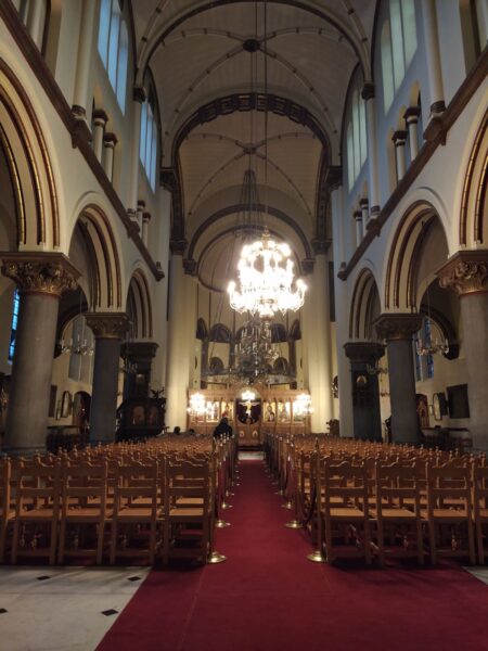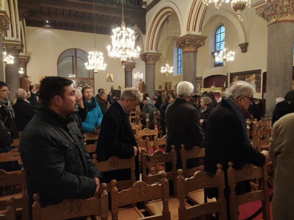 Θεία Λειτουργία ετελέσθη στον Μητροπολιτικό Ναό Παμμεγίστων Ταξιαρχών Βρυξελλών, κατά την Κυριακή της Απόκρεω 23ης Φεβρουαρίου 2020, παρουσία ικανού πλήθους του εκεί Ορθοδόξου ευσεβούς πληρώματος.