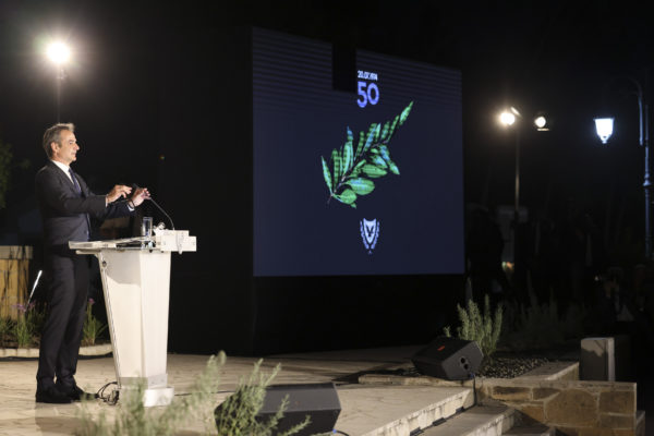 Σαφές μήνυμα προς την Άγκυρα έστειλε χθες ο πρωθυπουργός, Κυριάκος Μητσοτάκης, κατά την ομιλία του στην εκδήλωση μνήμης για τη συμπλήρωση 50 ετών από το πραξικόπημα και την τουρκική εισβολή στην Κύπρο που πραγματοποιήθηκε στους κήπους του Προεδρικού Μεγάρου, στην Κύπρο.