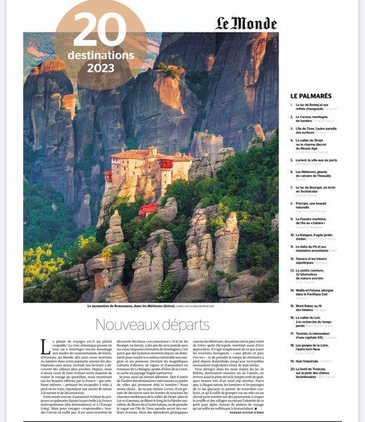 Ανάμεσα στους 20 κορυφαίους προορισμούς σε όλον τον κόσμο που πρέπει κάποιος να επισκεφθεί μέσα στο 2023 περιλαμβάνονται τα Μετέωρα, σύμφωνα με μεγάλο αφιέρωμα της γαλλικής εφημερίδας Le Monde.