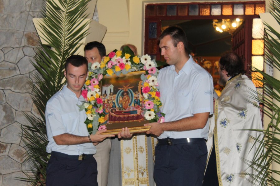 Με χριστιανική ευλάβεια παρακολούθησαν οι πιστοί τον πανηγυρικό εσπερινό μετ’ αρτοκλασίας και τη λιτάνευση της Ιερής Εικόνας της Κοιμήσεως της Υπεραγίας Θεοτόκου στον ομώνυμο ναό της 110 Πτέρυγας Μάχης στη Λάρισα, στο πλαίσιο του πανηγυρικού διημέρου.