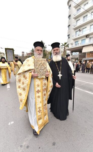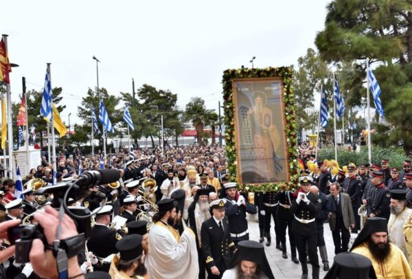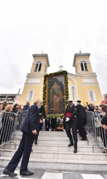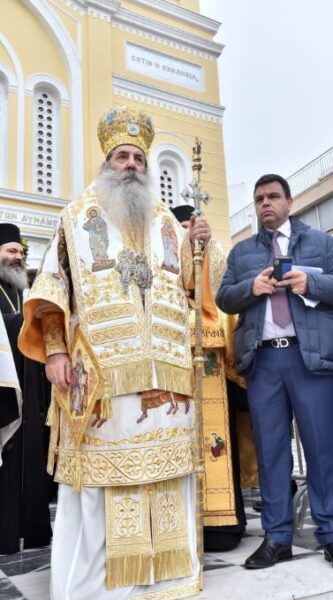 «Ερχόμεθα από τα Αγιασμένα χώματα της Μακεδονίας, από τα Αγιασμένα χώματα των μαρτύρων και των ηρώων της πίστεως, εδώ σε έναν ιστορικό τόπο της πατρίδος μας, στον Πειραιά», είπε ο Σεβασμιώτατος και μιλώντας για τα χαρακτηριστικά του λαού μας, επεσήμανε ότι «διαχρονικά είχε πάντοτε την αναφορά του στους Αγίους της πίστεως», συμπληρώνοντας πως «η αναφορά αυτή του λαού στους Αγίους της πίστεως δεν αποτελεί ένα εθιμικό στοιχείο του πολιτισμού μας. Αποτελεί ένα οντολογικό στοιχείο της υπάρξεώς του, γιατί αυτός ο λαός με τα όποια λάθη του, με τις όποιες περιπέτειες του, έμαθε να σέβεται τον Θεό, να συνδέει τη ζωή του με τη ζωή του Χριστού και τη ζωή των Αγίων».