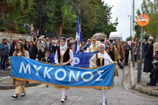 Στον Ιερό Ναό του Αγίου Αιμιλιανού, λόφου Σκουζέ, στην Αθήνα, με την άδεια και την ευλογία του Μακαριωτάτου Αρχιεπισκόπου Αθηνών και Πάσης Ελλάδος κ. Ιερωνύμου Β’ , ιερούργησε το πρωί της 10ης Νοεμβρίου 2019, ο Σεβασμιώτατος κ. Δωρόθεος Β’, με την ευκαιρία της ετησιας εορτής της Αδελφότητος Ανωμεριτών Μυκόνου στην Αθήνα, με τη συμμετοχή των Εφημερίων του Ναού, οι οποίοι τον υπεδέχθησαν όπως πάντα με εγκαρδιότητα, και την παρουσία των Βουλευτών Κυκλάδων κας Αικ. Μονογυιού και Φιλ. Φόρτωμα, του Δημάρχου Μυκόνου κ.Κωνστ. Κουκά, της Δημοτικής Συμβούλου Μυκόνου κας Μαρουσώς Χανιώτη, του Προέδρου της Τοπικής Κοινότητος Άνω Μεράς κ. Π. Σταυρακόπουλου, της εκ προσώπου του Δημάρχου Αθηναίων κας Δομάζου, του Προέδρου της Αδελφότητος των εν Αθήναις Τηνίων κ. Εμ. Σκαρή και Μελών του ΔΣ, του Προέδρου των εν Αθήναις Αμοργίνων, του Προέδρου του Συνδέσμου Σεριφίων κ. Κουζούπη, και πλήθους των εν Αθήναις και Πειραιεί Μυκονίων.