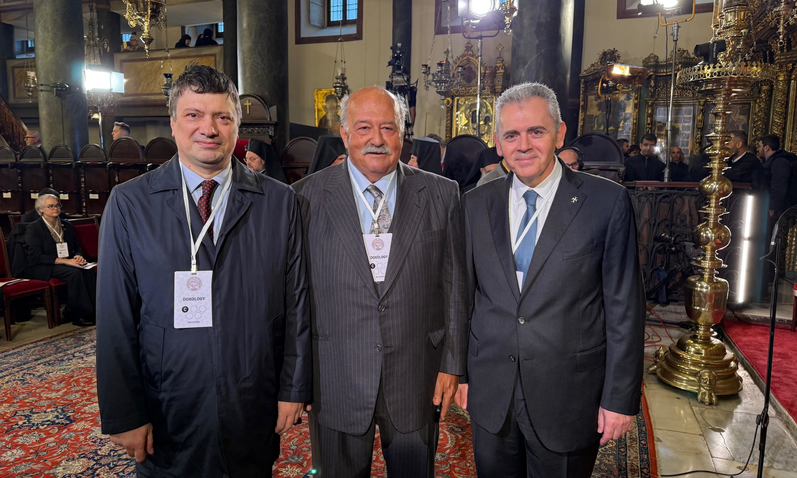 Τον Μάξιμο Χαρακόπουλο στην Κωνσταντινούπολη συνόδευαν ο Πρόεδρος της Γενικής Συνέλευσης, βουλευτής του Ρουμανικού Κοινοβουλίου, κ. Ιωάννης Βουλπέσκου και ο Σύμβουλος της ΔΣΟ δρ Κώστας Μυγδάλης.