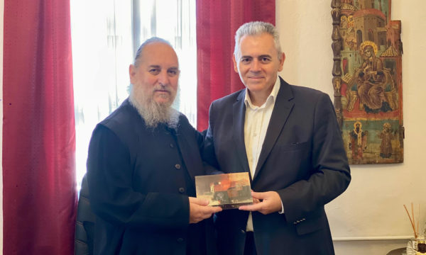 Συγκεκριμένα, ο επικεφαλής της ΔΣΟ συναντήθηκε στο μητροπολιτικό Μέγαρο με τον Μητροπολίτη Ίμβρου και Τενέδου κ. Κύριλλο, στον οποίο και προσέφερε αντίγραφο του έργου «Δέηση για την ειρήνη». Ο Μάξιμος Χαρακόπουλος συνεχάρη τον αεικίνητο ιεράρχη για το σημαντικό έργο που επιτελεί στο πολύπαθο νησί.