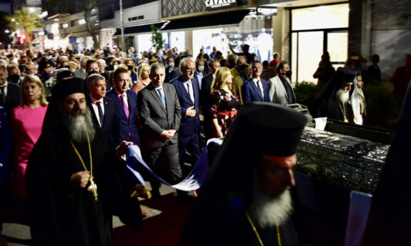 Ο Θεσσαλός πολιτικός συμμετείχε στον κατανυκτικό εσπερινό στα ερείπια της παλαιάς Βασιλικής, την προπαραμονή της εορτής, αλλά και στη λιτανεία των ιερών λειψάνων του Μυροβλύτη Αγίου στην πόλη της Λάρισας, παρουσία επτά ιεραρχών της ελλαδικής εκκλησίας, των πολιτικών και στρατιωτικών αρχών του τόπου και χιλιάδων πιστών.