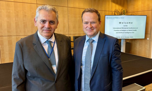 Ο κ. Μάξιμος Χαρακόπουλος πραγματοποιεί επίσκεψη στο Βερολίνο, κατόπιν επίσημης πρόσκλησης να συμμετάσχει στην Υπουργική Διάσκεψη για τη Διεθνή Θρησκευτική Ελευθερία με θέμα: «Οι επιπτώσεις της Τεχνητής Νοημοσύνης (AI) στη Θρησκευτική Ελευθερία». Κατά τη διάρκεια της επίσκεψής του, συνοδευόμενος από τον βουλευτή της Βουλής των Αντιπροσώπων της Κύπρου, κ. Ηλία Μυριάνθους, και τον σύμβουλο της ΔΣΟ δρ. Κώστα Μυγδάλη, είχε σημαντικές συναντήσεις με εκπροσώπους ιδρυμάτων και κυβερνητικούς αξιωματούχους διαφόρων κρατών που δραστηριοποιούνται στον χώρο του διαθρησκειακού και διαπολιτισμικού διαλόγου.