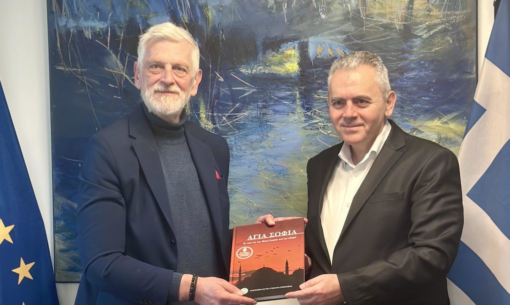 Μετά το πέρας της συνάντησης ο επικεφαλής της ΔΣΟ ενεχείρισε στον υφυπουργό Εξωτερικών τον βραβευμένο από την Ακαδημία Αθηνών Τόμο «ΑΓΙΑ ΣΟΦΙΑ: Οι Ναοί της του Θεού Σοφίας ανά τον κόσμο», που έχει εκδώσει η ΔΣΟ, στο πλαίσιο της σχετικής παγκόσμιας εκστρατείας της.