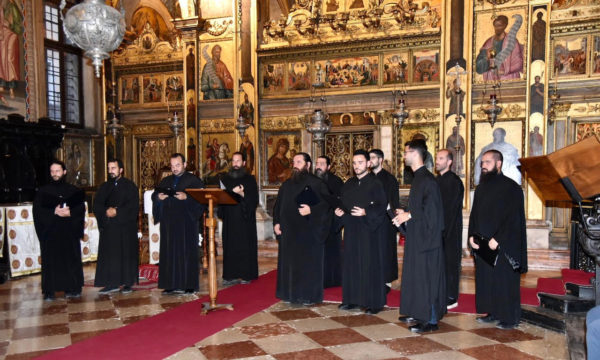 Της παρουσίασης του Τόμου προηγήθηκε σε μια κατανυκτική ατμόσφαιρα, η απόδοση βυζαντινών ύμνων από χορωδία της Μονής του Αγίου Συμεών στο Πανόραμα Θεσσαλονίκης, στον ιστορικό Ελληνικό Ναό του Αγίου Γεωργίου.