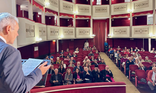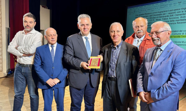 Χαιρετισμό στην εκδήλωση, που έλαβε χώρα στο Δημοτικό Θέατρο «VittorioEmanuele», απηύθυναν ο Αρχιεπίσκοπος του Μπενεβέντο, Μητροπολίτης κ. Felice Accrocca, ο Επίσκοπος Κρατείας κ. Γεώργιος, ως εκπρόσωπος του Μητροπολίτη Ιταλίας του Οικουμενικού Πατριαρχείου κ. Πολύκαρπου, και ο αντιδήμαρχος της πόλης του Μπενεβέντοκ. Giovanni Zanone.
