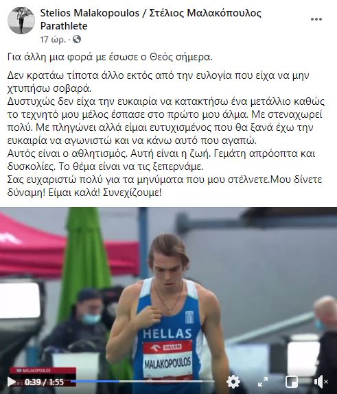 Αυτά αναφέρει στη συγκινητική, επίκαιρη ανάρτησή του, ο Στέλιος Μαλακόπουλος, ένας απο τους κορυφαίους Έλληνες αθλητές με αναπηρία.