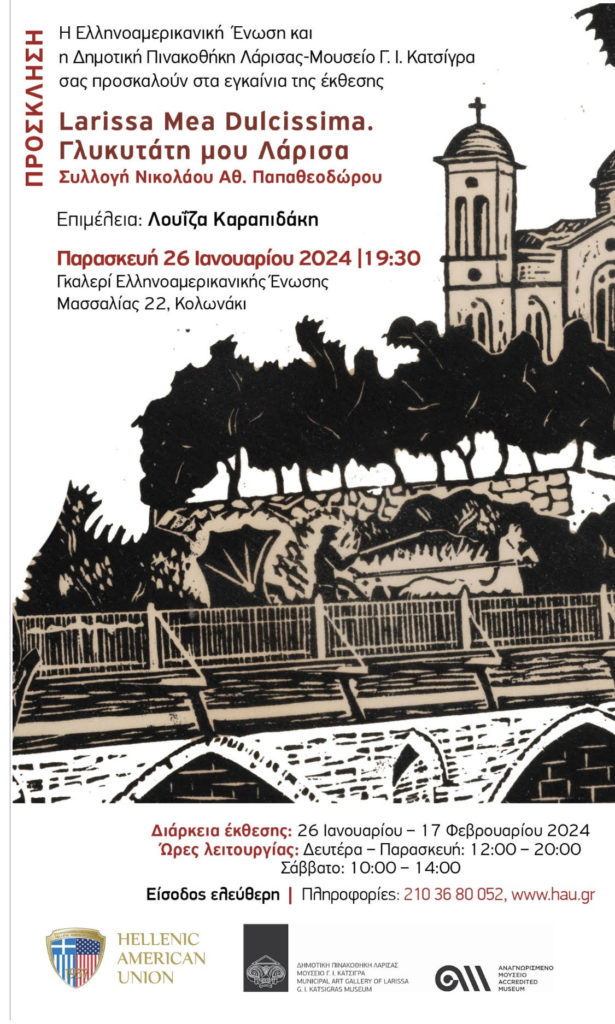 Ο βουλευτής Λαρίσης της Νέας Δημοκρατίας κ. Μάξιμος Χαρακόπουλος ξεναγήθηκε στην έκθεση «Γλυκυτάτη μου Λάρισα»(«Larissa mea dulcissima Γλυκυτάτη μου Λάρισα») μέρους της συλλογής του ιστοριοδίφη – συλλέκτη και Επίτιμου Διδάκτορα Ιατρικής του Πανεπιστημίου Θεσσαλίας, κ. Νίκου Παπαθεοδώρου, στην Γκαλερί της Ελληνοαμερικανική Ένωσης στην Αθήνα, που επιμελήθηκε η κα Λουίζα Καραπιδάκη.