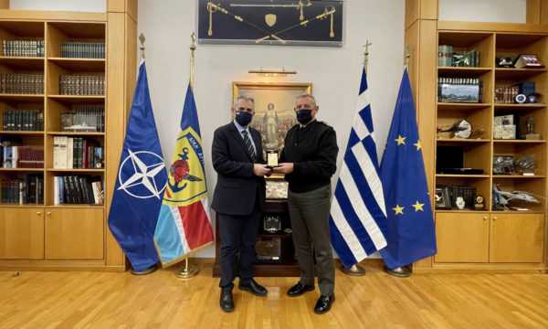 Ο Αρχηγός ΓΕΕΘΑ ενημέρωσε τον Μάξιμο Χαρακόπουλο σχετικά με την πορεία των εξοπλιστικών προγραμμάτων, που βρίσκονται σε εξέλιξη, καθώς και για θέματα της αρμοδιότητάς του, ενώ του επέδωσε την “Πλακέτα του Αρχηγού ΓΕΕΘΑ” με τα πέντε αστέρια.