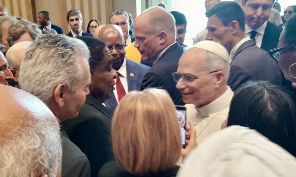 Ο Προκαθήμενος της Καθολικής Εκκλησίας, που εξέφρασε στον επικεφαλής της ΔΣΟ την ευαρέσκειά του για την κοινή παρουσία του με τον Οικουμενικό Πατριάρχη στη Νίκαια της Τουρκίας τον προσεχή Νοέμβριο, καλωσόρισε στην Αγία Έδρα τους εκπροσώπους του πολιτικού, θρησκευτικού και ακαδημαϊκού χώρου, που συμμετείχαν στις εργασίες της IPU, και τους προέτρεψε να συνεχίσουν τις διαβουλεύσεις σε πολιτικό επίπεδο για την εδραίωση της Οικουμενικής Ειρήνης.