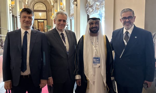 Η ηγεσία της ΔΣΟ με τον Πρόεδρο της Επιτροπής Αμυντικών και Εξωτερικών Υποθέσεων του Ομοσπονδιακού Εθνικού Συμβουλίου των Ηνωμένων Αραβικών Εμιράτων, δρ. Ali Rashid Al Nuaimi και τον Ανώτατο Σύμβουλο του ΓΓ της IPU, Mokhtar Omar.