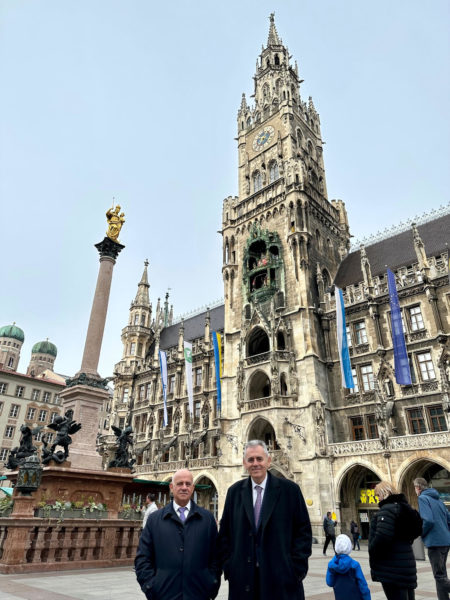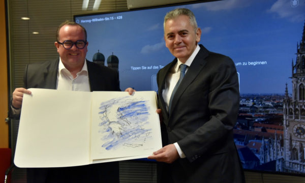 Η αντιπροσωπεία της ΔΣΟ επισκέφθηκε, επίσης, το ιστορικό Δημαρχείο του Μονάχου όπου είχε διαδοχικές συναντήσεις με τον εντεταλμένο για θέματα πολιτισμού κ. Michael Dzeba, καθώς και με τον δημοτικό σύμβουλο και μέλος των «Φίλων του Αγίου Όρους» κ. Clemens Baumgärtner. Κατά τις συναντήσεις ο επικεφαλής της ΔΣΟ αναφέρθηκε στη διεθνή εκστρατεία που έχει εγκαινιάσει η οργάνωση για την καταγγελία της μετατροπής της Αγίας Σοφίας σε τζαμί από την τουρκική ηγεσία. Εξερχόμενος δήλωσε ότι «η εδώ παρουσία μας έχει να κάνει με τις χριστιανικές ρίζες και τις χριστιανικές αξίες που αποσιωπώνται σήμερα στην Ευρώπη. Όπως έχει ειπωθεί, εάν ξεκινήσει ένα αερόστατο από την Σκανδιναβία με προορισμό την Αθήνα, σε κάθε πόλη και χωριό θα δει να υψώνεται ένα καμπαναριό, που σημαίνει ότι το χριστιανικό αποτύπωμα είναι πολύ έντονο στην ευρωπαϊκή ήπειρο. Οι χριστιανικές αξίες έχουν συνδιαμορφώσει τον ευρωπαϊκό πολιτισμό, και αυτό δεν μπορεί να το αποσιωπούμε σήμερα στην Ευρώπη στο όνομα της πολυπολιτισμικότητας. Φτάσαμε σε σημείο στο όνομα της “πολιτικής ορθότητας” να μην λέμε “Καλά Χριστούγεννα” αλλά “καλές γιορτές”. Νομίζουμε ότι αυτός είναι ένας κίνδυνος για την Ευρώπη, γιατί αν η Ευρώπη, αφαιρέσει τις χριστιανικές αξίες στο όνομα της “πολιτικής ορθότητας” στο τέλος θα παύσει να είναι Ευρώπη. Αν δεν έχει τις χριστιανικές αξίες, το ρωμαϊκό δίκαιο, και το αρχαιοελληνικό πνεύμα τότε θα παύσει να είναι Ευρώπη. Και πάλι να ευχαριστήσω για την θερμή υποδοχή που μας επιφυλάξατε και προσβλέπουμε σε συνεργασία με Δήμους, όπως το Μόναχο, που έχει ακόμα ισχυρό χριστιανικό αποτύπωμα».