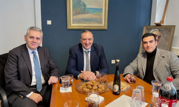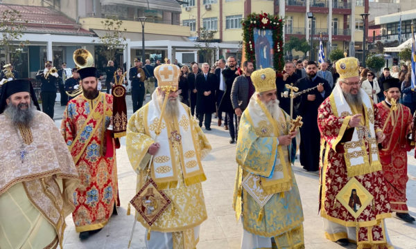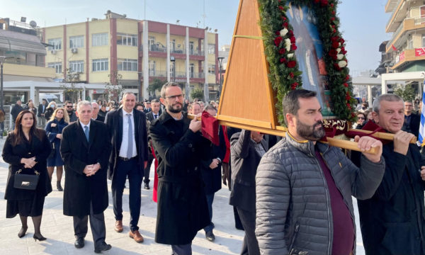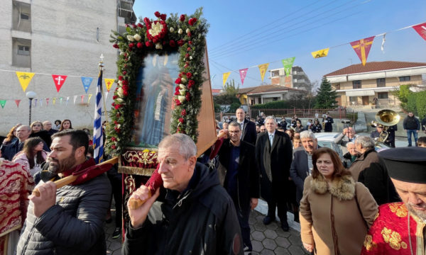 Μετά την λιτανεία ο κυβερνητικός βουλευτής ευχήθηκε τα Χρόνια Πολλά στη δημοτική αρχή, τον δήμαρχο Τυρνάβου κ. Γιάννη Κόκουρα και τον Γραμματέα του Περιφερειακού Συμβουλίου, εκπρόσωπο της επαρχίας στην Περιφέρεια Θεσσαλίας, κ. Ανδρέα Μπρέζα.