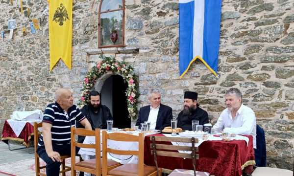 Ο Μάξιμος Χαρακόπουλος είχε την ευκαιρία να ανταλλάξει ευχές και να ακούσει τον κόσμο που κατέκλυσε το όμορφο μοναστήρι.