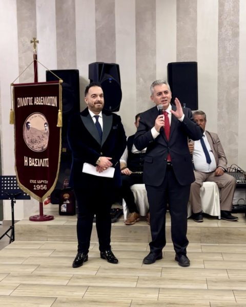 Σύντομο χαιρετισμό κλήθηκε να απευθύνει ο Μάξιμος Χαρακόπουλος, βουλευτής Λαρίσης της Νέας Δημοκρατίας, από τον πρόεδρο του συλλόγου Αβδελιωτών «η Βασιλίτσα» Αλέξανδρο Μπεκίρη στην ετήσια χοροεσπερίδα του συλλόγου.