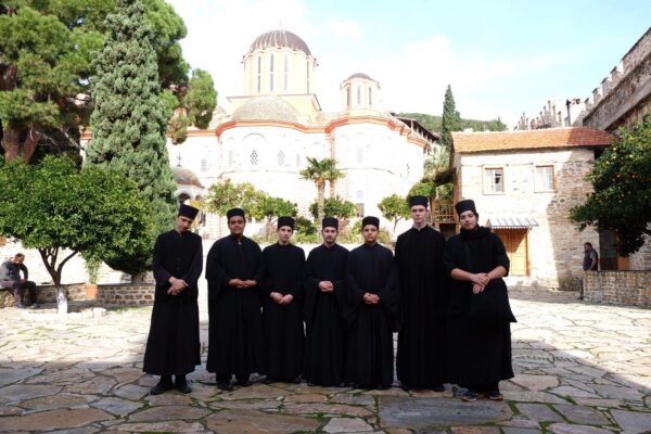 Στα φωτογραφικά στιγμιότυπα, “Άγγελοι επί της Γης”, μαθητές της Αθωνιάδας Σχολής στη σημερινή πανήγυρη της Ιεράς Μονής Ξενοφώντος.