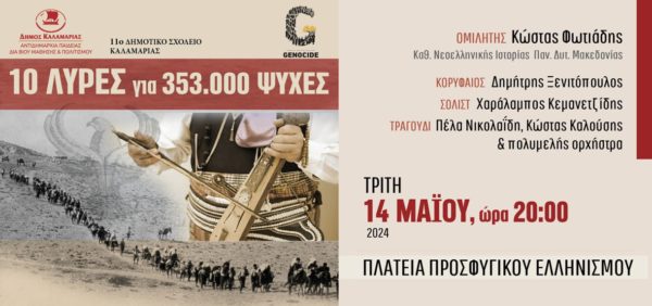 Με «10 λύρες για 353.000 ψυχές» η Καλαμαριά θυμάται τη Γενοκτονία του Ποντιακού Ελληνισμού