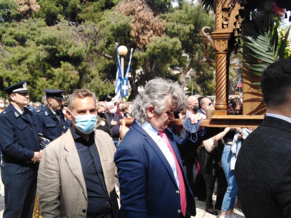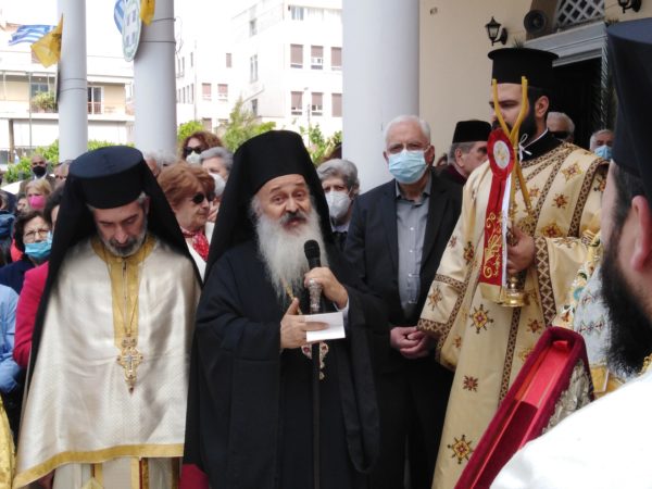 Με την επάνοδο της εικόνας στην εκκλησία, ο σεπτός Επίσκοπος κ.κ. Πλάτωνας αφού μετέφερε το κατάφορτο από χριστιανική αγάπη μήνυμα του Αρχιεπισκόπου Αθηνών και πάσης Ελλάδος κ.κ. Ιερωνύμου – που καλούσε ως στοργικός ποιμήν το χριστεπώνυμο πλήθος, να ξεπεράσει τις δυσπιστίες και τις πλάνες της παθογενούς εποχής μας και να αγκαλιάσει την εκκλησία του Χριστού μας, που είναι η μοναδική αληθινή πηγή θαλπωρής και αγάπης – διεκήρυξε μαζί με τις ηθικά ευγενείς και χριστιανικές ευχές του, την αδήριτη ανάγκη περισσότερο από άλλοτε σήμερα, να εδραιώσουμε και να διαφυλάξουμε την πίστη μας, που αποτελεί στην μακρά ελληνική διαχρονία, την τιμαλφή ηθική και πολιτισμική μήτρα του μαρτυρικού ελληνικού λαού. Στην αντιφώνησή του ο σεπτός πατέρας Αλέξιος, που με την ξεχωριστή φροντίδα και αγάπη του επιμελήθηκε την μεγαλοπρεπή εορτή, ευχαρίστησε το φιλόπτωχο ταμείο, τις κυρίες της ερανικής επιτροπής, τις εθελόντριες και τους εθελοντές που δούλεψαν αγόγγυστα για την άρτια υλοποίηση της ιεράς πανηγύρεως, την Φιλαρμονική της Ελληνικής Αστυνομίας, για την ευγενική συμμετοχή της, την Ελληνική Αστυνομία, για τα άψογα μέτρα τάξης και όλους τους ευλαβείς χριστιανούς, που με την αγάπη τους πύργωσαν, τη έξοχη αυτή χριστιανική εορτή.