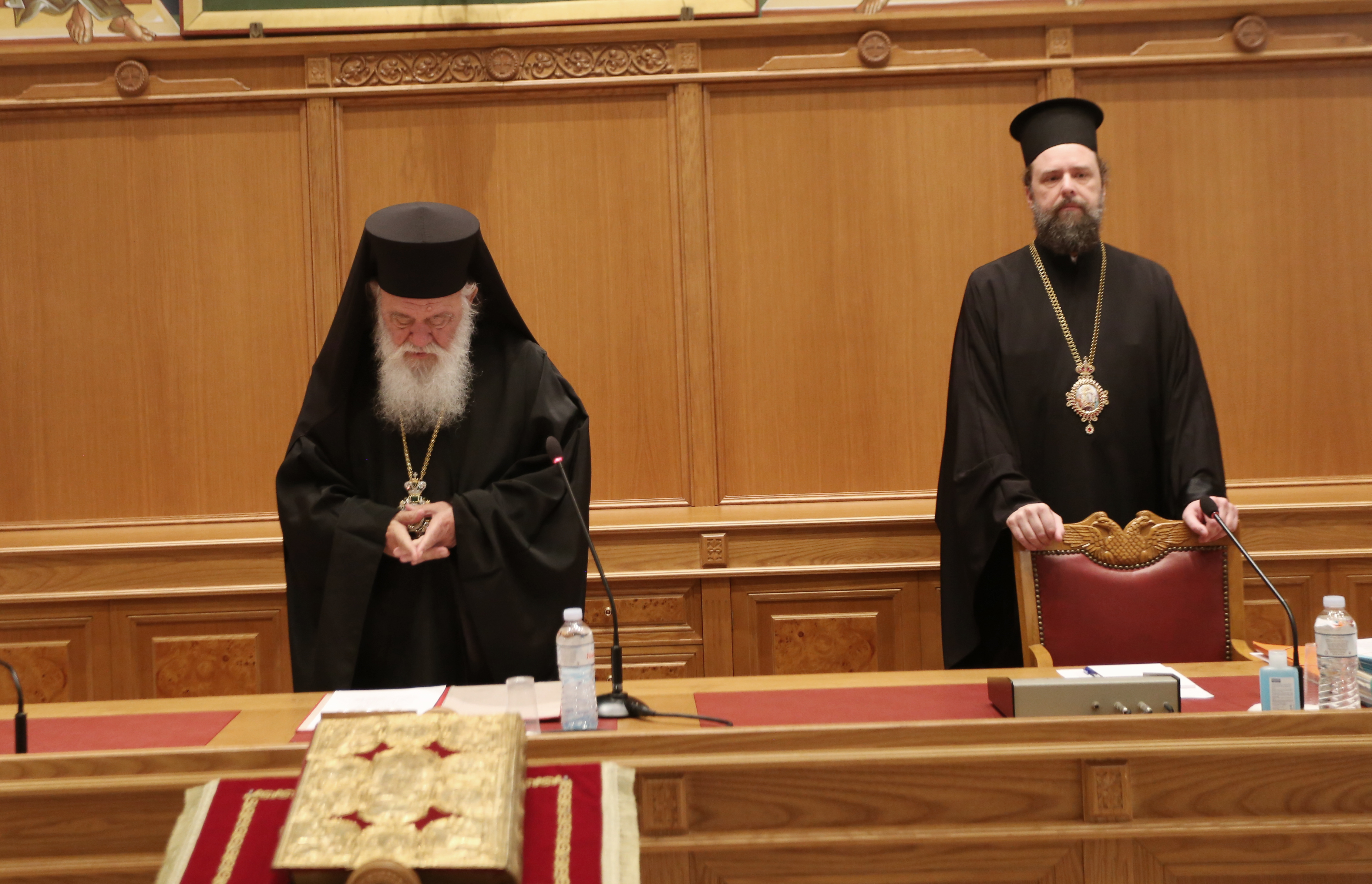 Τηρώντας τις αποστάσεις ασφαλείας, που προβλέπουν οι συστάσεις των ειδικών αλλά και τα μέτρα υγειονομικής προστασίας πραγματοποιείται η συνεδρίαση της Διαρκούς Ιεράς Συνόδου.