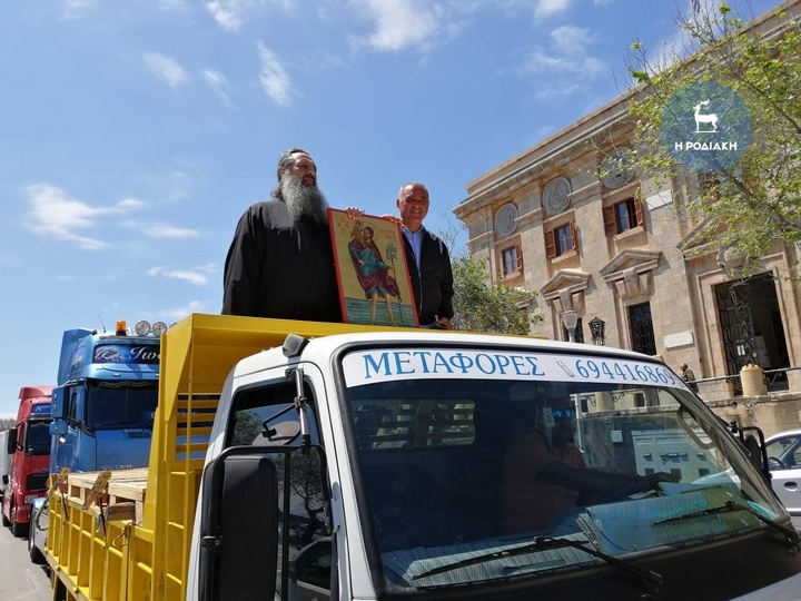 Μηχανοκίνητα έγινε φέτος η περιφορά της εικόνας του Αγίου Χριστόφορου στο νησί της Ρόδου ΛΌΓΩ των περιοριστικών μέτρων που ισχύουν για τον κορωνοϊό.