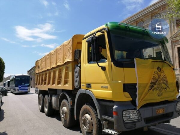 Η πορεία έγινε με τη συμμετοχή του Συνδέσμου Ιδιοκτητών Φορτηγών Αυτοκινήτων Δημοσίας Χρήσεων στο νησί της Ρόδου.