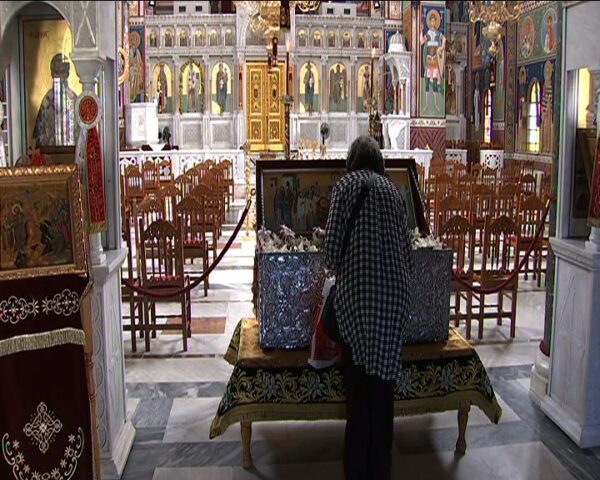 Αρκετοί ήταν οι Λαρισσαίοι οι οποίοι περίμενα στην ουρά, κάτω από τις υψηλές θερμοκρασίες για την εποχή, τηρώντας ευλαβικά τις αποστάσεις, προκειμένου να προσκυνήσουν τον Άγιο τους.
