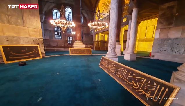 Σύμφωνα με εκτενές ρεπορτάζ του TRTHaber, ισλαμικά αντικείμενα που αποθηκεύτηκαν κατά την περίοδο το σύμβολο αυτό της Ορθοδοξίας ήταν μουσείο, αναμένεται να επιστρέψουν στο τζαμί μετά από 87 χρόνια. Έχει αρχίσει ήδη η αποκατάσταση καλλιγραφικών ισλαμικών πινακίδων προκειμένου να τοποθετηθούν και πάλι στην Αγιά Σοφιά.