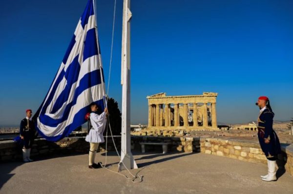 Με τους 21 κανονιοβολισμούς από τον λόφο του Λυκαβηττού και στη συνέχεια την έπαρση της Γαλανόλευκης σημαίας στον ιερό βράχο της Ακρόπολης, άνοιξε το πρόγραμμα των εκδηλώσεων για τον εορτασμό της Εθνικής Επετείου της 25ης Μαρτίου.