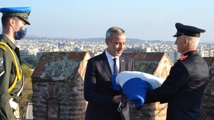 Φέτος, ανήμερα της εορτής του Αγίου Δημητρίου, ο δήμαρχος Θεσσαλονίκης κι ο διοικητής του Γ΄ Σώματος Στρατού ύψωσαν στον Λευκό Πύργο, παρουσία της Προέδρου της Δημοκρατίας Κατερίνας Σακελλαροπούλου, την ίδια σημαία που είχε τοποθετηθεί το 2012, με την ευκαιρία της συμπλήρωσης 100 χρόνων από την απελευθέρωση της πόλης.