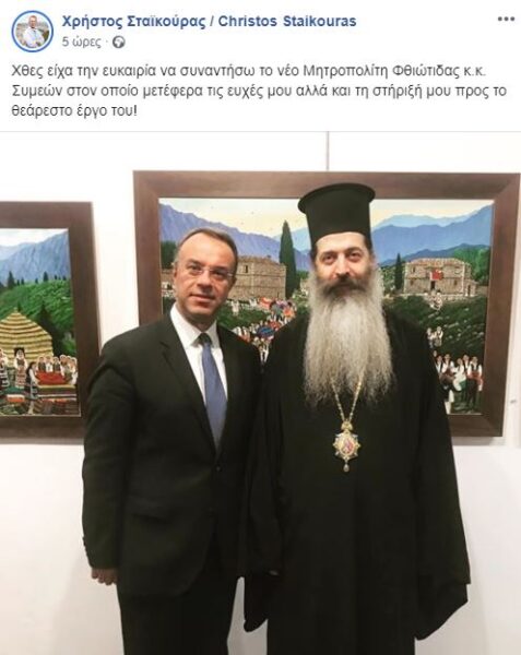 Συνάντηση με τον υπουργό Οικονομικών Χρήστο Σταϊκούρα είχε χθες ο Σεβασμιώτατος Μητροπολίτης Φθιώτιδος κ. Συμεών.