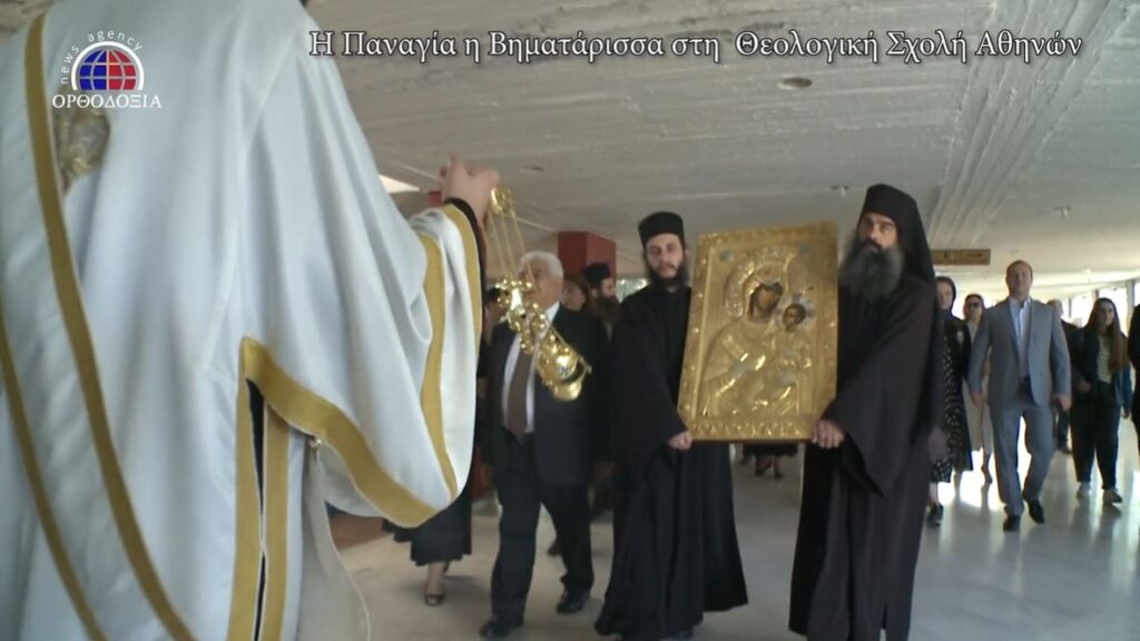 Μεγάλες θρησκευτικές στιγμές βίωσαν χθες καθηγητές και φοιτητές της Θεολογικής Σχολής του Εθνικού και Καποδιστριακού Πανεπιστημίου Αθηνών, όπου υποδέχθηκαν τη θαυματουργή εικόνα της Παναγίας της Βηματάρισσας εκ του Αγίου Όρους και της ΙΜΜ Βατοπαιδίου. Πρόκειται για Πιστό αντίγραφο της εικόνας το οποίο θα παραμείνει στο παρεκκλήσιο της σχολής.