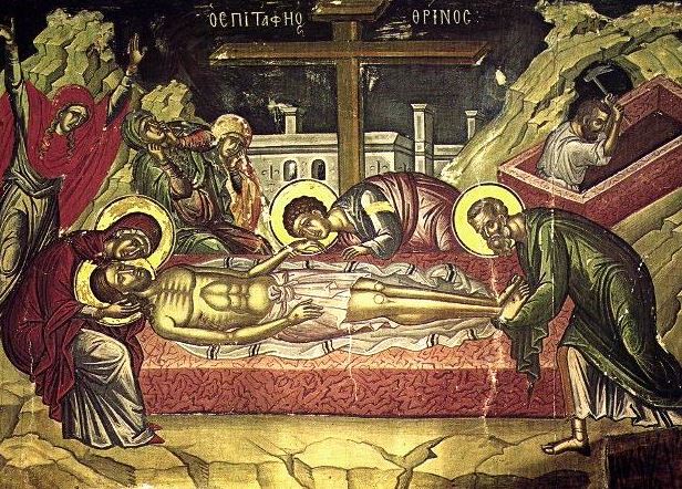 Μετά την περιφορά του Επιταφίου επιτελείται ο ενταφιασμός επί της Αγίας Τραπέζης, η οποία θεωρείται ο Τάφος του Χριστού.
