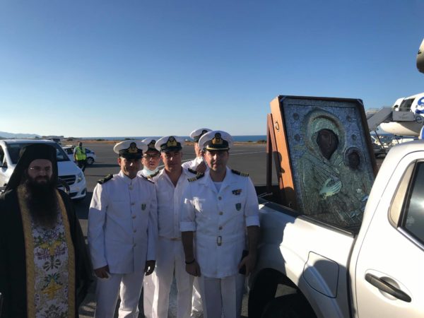 Η Ιερά Εικόνα, μεταφέρθηκε αεροπορικώς, ευγενική δωρεά της αεροπορικής εταιρείας Sky Express, υπό τη μέριμνα του αξιότιμου κ. Ιωάννη Λυδάκη, διευθυντή της εταιρείας στο Ηράκλειο.