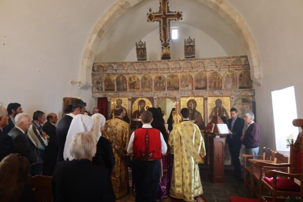 Αμεσως μετά, τελέσθηκε η Τρισαρχιερατική Θεία Λειτουργία, προεξάρχοντος του Σεβασμιωτάτου Μητροπολίτου Κασσανδρείσς κ. Νικοδήμου και συνιερουργούντων των Σεβασμιωτάτων Μητροπολιτών Σταγών και Μετεώρων κ. Θεοκλήτου και Σύρου & Κύθνου κ. Δωροθέου Β’ , με τη συμμετοχή των Εφημερίων της Κύθνου και την παρουσία του Υπουργού Εργασίας κ. Ιω. Βρούτση, της Βουλευτού Κυκλάδων κας Αικατ. Μονογυιού, του Επάρχου Κέας-Κύθνου κ. Ιω. Ευαγγέλου, του Δημάρχου Κύθνου κ, Σταμ. Γαρδέρη, του Αντιδημάρχου Κύθνου κ. Κωνστ. Φιλιππαίου, του Προέδρου και Μελών του Δημοτικού Συμβουλίου Κύθνου, του Εντιμωτάτου ζεύγους των Φιλανθρωποτάτων και Ευσεβέστατων Ευεργετών Μαρίνας και Αθανασίου Μαρτίνου, του Προέδρου του «Συνδέσμου Σιφνίων» κ. Αντ. Κοκιασμενου και πληθύος Κυθνίων κάθε ηλικίας.