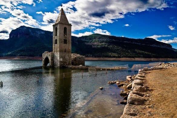 Το 1960, μία μεσαιωνική εκκλησία του 11ου αιώνα, η εκκλησία «Sant Romà», στην πόλη «Vilanova de Sau» που βρίσκεται μια ώρα μακριά από τη Βαρκελώνη, «βυθίστηκε» για τις ανάγκες δημιουργίας μιας τεχνητής λίμνης που λειτουργούσε ως δεξαμενή νερού, όμως σήμερα εξαιτίας της ξηρασίας που έχει πλήξει τη χώρα, έχει αναδυθεί στην επιφάνεια.