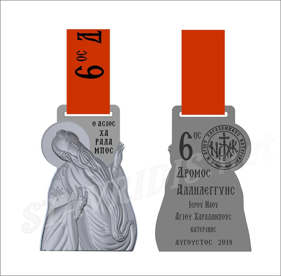 Η Οργανωτική Επιτροπή του 6ου Αγώνα Δρόμου Αλληλεγγύης της Ιεράς Μητροπόλεως Κίτρους και Κατερίνης και Πλαταμώνος και του Ιερού Ναού Αγίου Χαραλάμπους, έδωσε στη δημοσιότητα το μετάλλιο του αγώνα, που θα διεξαχθεί τη Δευτέρα 26 Αυγούστου 2019 στην Κατερίνη.